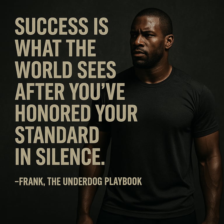 Chasing success will burn you out. Living by a standard will build you. In this episode and blog, Frank breaks down how elite athletes, military units, and relentless underdogs build greatnessânot by hype, but by honoring a personal code. This weekâs Underdog Challenge? Write your standard. Live it. Let success chase you.